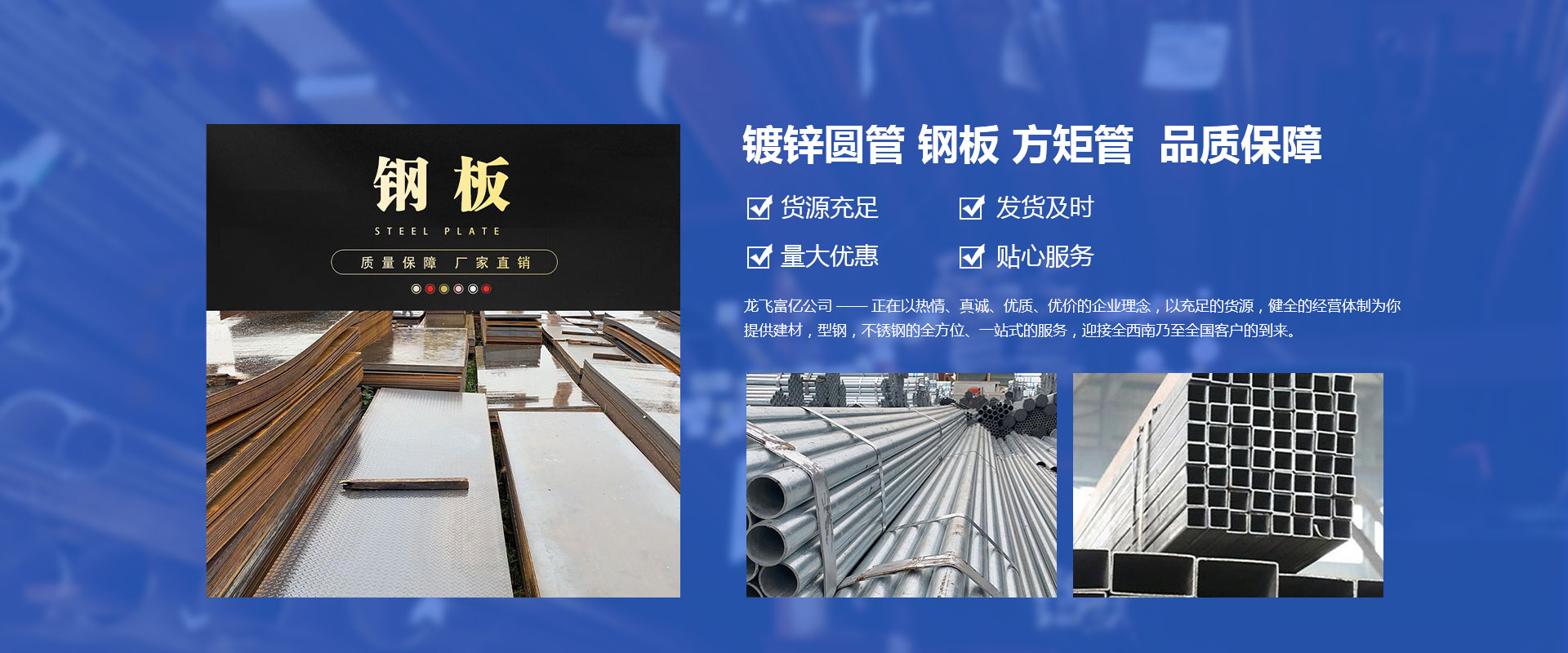 “龍飛富億公司”作為西南地區建材,型材,鍍鋅型材,不銹鋼公司,彌補了西南地區采購模式單一化的市場空白,真正做到了鋼材全方位,一站式的服務公司。